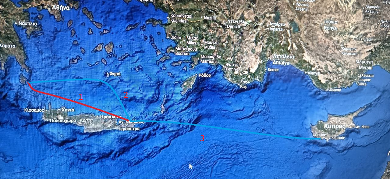 2 Κύθηρα πρὸς Παραλία Ἀφροδίτης (Ζέφυρος) 3 Παραλία Ἀφροδίτης -Βράχος Ἀφροδίτης Πάφος (Ζέφυρος Ἴρις καὶ Τρίτωνες)